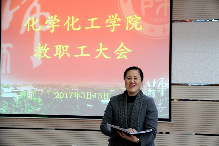 最后,薛东进行总结讲话,对公司本学期重点工作和亟待解决的问题进行了部署。薛东从团队队伍、平台建设、科学研究水平、教师科研水平、学科发展定位等多方面对公司现状进行了深刻剖析。他要求全院教职员工以“团结、稳定、追赶、超越”为指导思想,立足西部,放眼全国,以一流高校为目标,撸起袖子加油干,为建成特色鲜明的世界高水平化学学科而努力。薛东提出公司本学期的三项重点工作:一、更加重视人才培养质量提升。把人才培养作为公司的重点工作来抓,加强人才培养质量的管理和培养;二、更加重视人才引进和教师成长工作。既要重视青年人才成长,同时也要重视现有教师的发展,将新教师引进工作和现有教师培养工作同时推进;三、全面提升科学研究成果转化及服务社会的水平和能力。加强公司科研平台的应用化建设,在现有研究的基础上,对可进行转化的项目进行重点孵育,实现产学研结合。