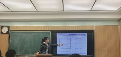 讲座在两位同学对台湾及台湾大学的介绍中拉开序幕,以台湾大学的化学系为基础,展示了自己所在室验室的研究方向、人员组成、分工和特色。据称,他们所在实验室的研究主要由发光材料、能源化学和纳米生化小组三个部分构成。两位同学主要对发光材料部分进行了详细的介绍,对正在研究的“新相红色氟化物RbGeF6(Mn4+)提升白色发光二极体的演色性”的实验进行了全面的讲解,从实验原理、经历阶段、应用前景、现有实验结果、与业界的联系等方面进行了生动形象的报告。在实验内容讲解之外,两位学长更是以自己的学习科研为基础,向大家讲述了自身的经历,从如何选择合适自己的方向、到大学时期在实验室内的学习重点和自身目标,并针对考取研究生时公司及导师选择等问题给出了一定的建议。同学们也积极主动地和学长进行交流,对学习中存在的问题进行了沟通。