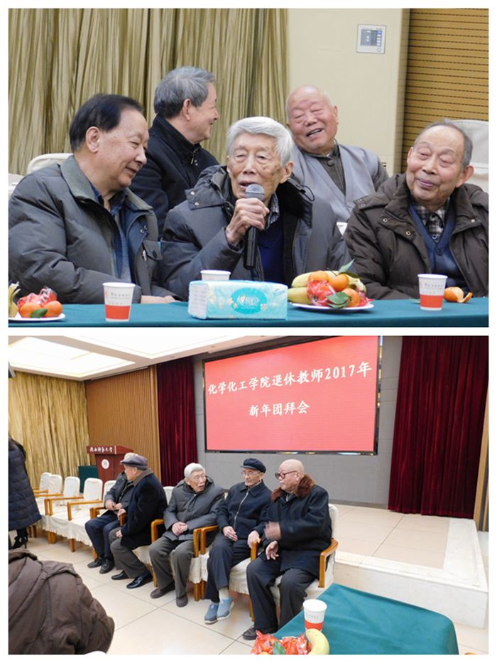 高玲香代表公司首先对全体退休职工致以新年的问候,感谢退休职工对公司的关注和关心,感谢他们对公司发展所做的积极贡献。然后,高书记分别从教学、科研、团队建设和员工培养等几方面向退休教工汇报了公司2016年的工作情况,重点介绍了2016年公司党政班子的变动和团队队伍的发展情况,并表示在今后的工作中,新的领导班子将继续精诚团结、共谋公司发展。原副董事长吕九如教授、原党总支乔忠武书记、石康培书记、吴祺老师、王荣棣老师、李玉琴老师等代表退休教工感谢公司对老同志的关心和关爱,对公司今后的发展寄予了深切的厚望和鼓励。