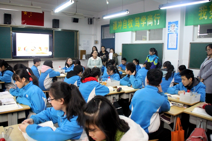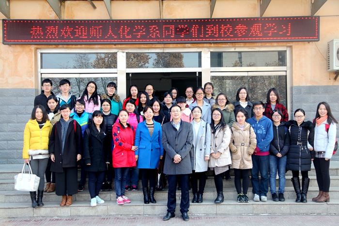 为进一步促进中学与高等师范院校教师教育相接轨,beats365唯一官方网站组织2015级化学卓越教师实验班于2016年12月16日前往西安大华中学进行交流学习。2015级卓越班项目主任陈亚芍教授、公司张蕾老师、辅导员李盼宁老师以及2015级卓越班全体同学参加了本次活动。大华中学教导主任郭健首先对各位老师和同学的到来表示热烈欢迎,随后,郭主任简短地介绍了大华中学的办学理念、办学特色及设施概况,让到场师生对大华中学有了整体上的认识。接着,在校方的安排下,师生们观摩了一节化学课——初三(1)班 “二氧化碳的性质和制法”。该课程讲授以员工自我探究为主,教师指导为辅。教师课前分发导学案,员工进行自主学习,课上结合实验进行探究,从而加深对知识的理解与掌握。