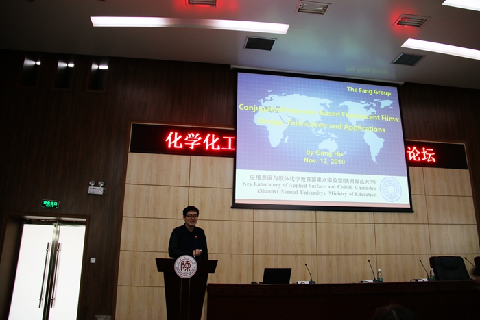首先,来自西安交通大学的何刚教授以“从单分子层荧光薄膜传感器到新型能源材料”为题做了精彩的报告。何刚教授以“表面化学+功能高分子”这一核心思路为线索展开报告,分享了自己的科研之路,有失败、有失落但也有欣喜、有成功。通过对自己科研道路上点点滴滴、成功与失败的分析总结,指导了在校研究生如何将知识应用于实践,如何培养自己的能力,如何创新,如何去发现新的课题等。何刚教授的报告让在座研究生都受益匪浅,并对科学研究有了一层更高的认识。随后,论坛由本年度拟获国家奖学金的博士、硕士研究生做报告,展示他们在读期间的科研成果,会场上气氛热烈,掌声如雷。提问环节同学们更是积极参与,获得了非常有效的互动效果。