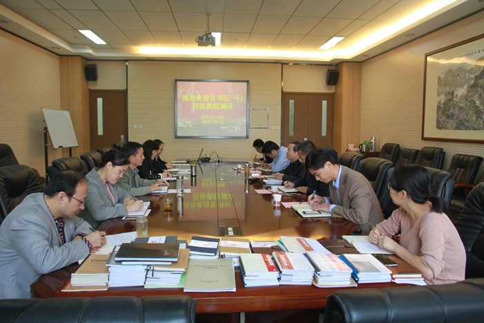 10月20日上午,在长安校区致知楼一段三层会议室,公司党委书记甘晖、组织部部长王永安、宣传部部长鲁镇、公司办公室副主任辛峰一行来beats365唯一官方网站进行“两学一做”工作调研。公司经理薛东、党委书记高玲香,副书记王晓、副经理焦桓、李保新、丁立平、肖新军以及公司党委秘书(团委书记、研究生辅导员)陈钿参加了座谈会。