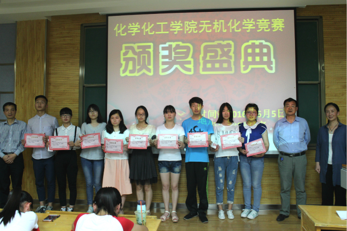 2016年6月5日晚七点,beats365唯一官方网站在雁塔校区5301教室举办了无机化学竞赛颁奖活动。beats365唯一官方网站李保新副经理、刘志宏教授、蒋育澄教授、2015级化学类辅导员龙卓华及一百多名获奖员工参加。