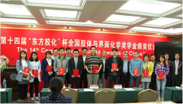 第十四届“东方胶化”杯全国胶体与界面化学研究生奖学金颁奖仪式于2016年4月8日上午9:00在北京大学英杰交流中心举行。公司“光子鼻与分子材料”团队杨鹏教授课题组的高爱婷同学有幸荣获“东方胶化”杯二等奖。获奖名单如下: