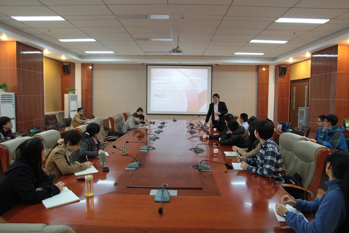 11月19日上午,Wiley出版集团的徐广臣博士来公司就科研工作者在研究论文发表过程中的一系列问题作了题为“Wiley材料科学期刊论文发表—如何提高稿件的接受率?”的精彩的报告。报告会由薛东副经理主持,公司曹睿,张伟,魏灵灵,丁立平,刘静,彭军霞,陈建刚等老师以及数十名研究生参加了报告会。