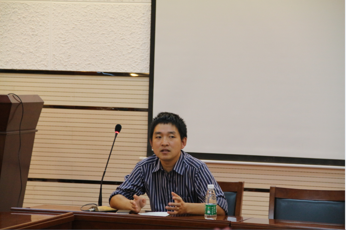 在与2013化学2班同学交流的过程中,江金强教授首先对同学们预先准备的问题作了解答,尤其是针对同学们提出的师范生就业、考研以及教师职业定位等方面的疑虑做出了详细的解答。江金强教授向同学们强调,师范生考研与否,一定要根据自身情况,再去选择,而一旦做出选择,就应该坚持。同时,江老师以自身经历告诉同学们,人生面临很多选择,有时候需要顺其自然,希望大家不要因考虑过多而造成太大压力。接下来,江金强教授就公司近期开始的研究性实验,针对大家产生的困惑和思考做了说明,详细指导了如何查阅文献,如何处理实验过程中遇到的科研难题,如何处理好与实验室研究生的关系以及如何与导师进行沟通与交流。江金强教授建议学们先从中文文献入手,了解背景知识,循序渐进,更要意识到实验是中学老师培养中员工创新能力的重要抓手,因此,研究性实验对培养一名优秀中学教师具有重要的作用。