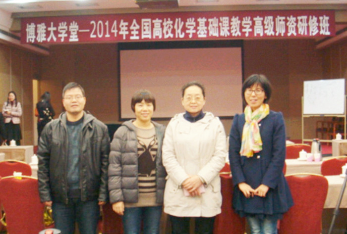 为提高公司化学基础课教学和研究水平,11月14日-16日,公司物理化学教研室宋永红老师、无机化学教研室李淑妮老师、有机化学教研室石先莹老师以及分析化学化学教研室杜建修老师参加了由北京大学化学与分子工程公司与北京大学出版社于2014年11月14—16日联合举办“博雅大学堂—2014全国高校化学基础课教学高级团队研修班”。
