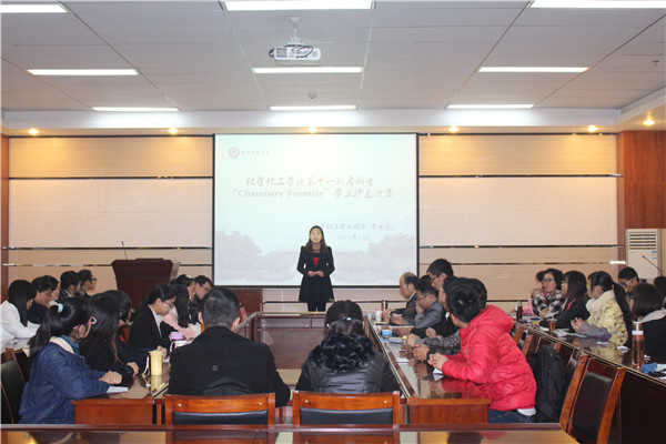 为进一步激发公司本科生的科研兴趣,培育员工的科学精神,促进员工专业研究能力的提升,公司于2014年11月25日晚7:00在致知楼1668与1568两个会场举办了第十一期本科生“Chemistry Frontier”学术沙龙。“Chemistry frontier ”学术沙龙是公司传统学术型员工活动,是提高员工科研创新实践能力、培养良好科研习惯的重要平台。在此次活动中,陈亚芍教授、张国防教授、杨鹏教授、岳宣峰副教授和黄治炎副教授应邀出席本次活动担任评委,两个会场的活动在主持人赵家慧、李茜的主持下同时进行。