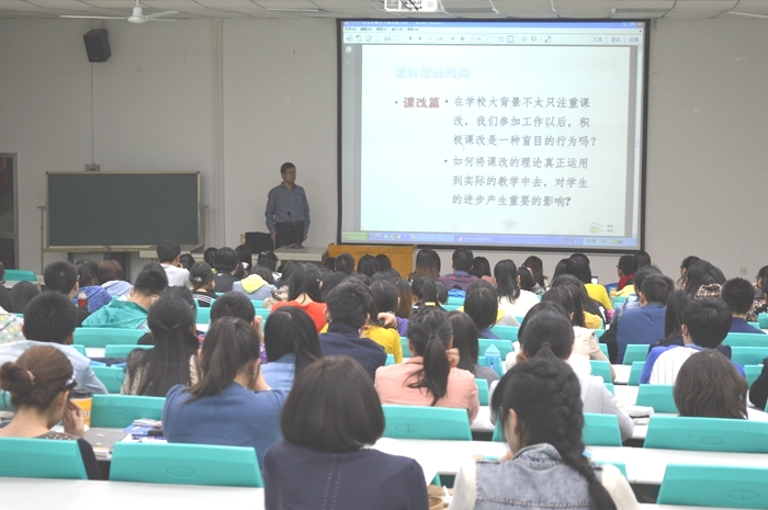 报告会上,杨承印教授以“提高专业素养,抓紧教师技能训练”为主题,帮助同学们进行了学业发展规划。杨老师不但对师范专业的发展前景做了详细解读,而且结合自身的教学实践经验和新课程改革下的教育需求,为大家分析了免费师范生的就业优势,并号召同学们刻苦学习专业知识,踏实练好教学基本功,全面提高从事教师教育工作的技能。杨老师特别引用笛卡尔的名言“我思故我在”,勉励免费师范生要努力做到专业素养和教学基本功二者兼顾,既做好人文科学的学习,同时也要做好实验,做好专业上的研究。在具体谈及从教技能训练的问题上,杨老师强调,教学有法,教无定法,贵在得法。只有明确课程讲授的教学标准、掌握适当的哲学和教育心理学知识以及做好教学设计,才能将课上好。在交流中,杨老师还向大家推荐了许多教育学方面的经典著作,鼓励同学们提高公司产品的理论素养。