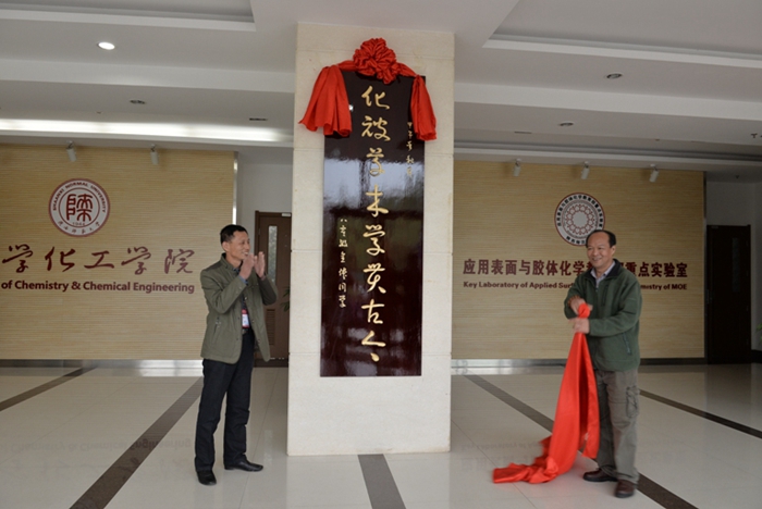 随后,公司77级员工、原化学系80级员工辅导员、原化学与材料科学公司党总支书记白剑利代表80级员工向公司敬献了题写“化被草木,学贯古今”的牌匾,表达了员工们对母院的感恩之情与美好祝愿。80级员工符同权、贾天牛共同为牌匾揭幕。