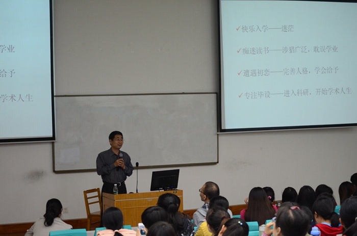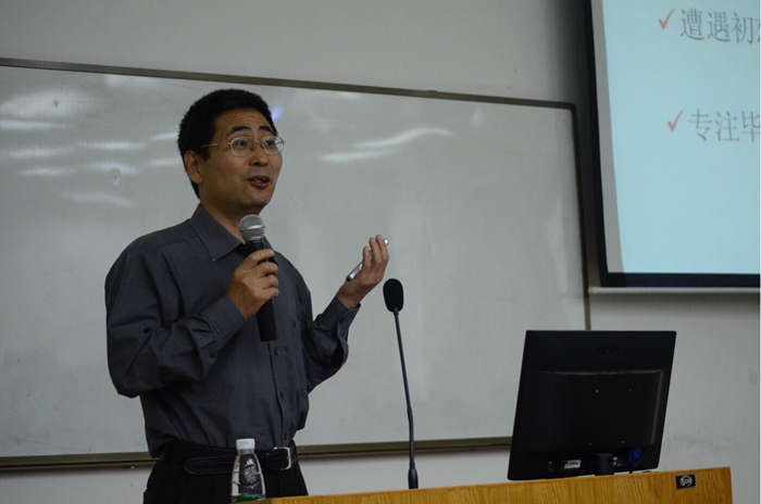 王育华教授首先向大家介绍了自己的研究领域,随后与师生一起畅叙了自己人生的点点滴滴,并结合自身工作中的实例给同学们上了一堂生动的人生励志课。他介绍了自己如何从一名普通藏族学子成长为知名学者的传奇经历;用朴素的语言,谦虚的口吻与同学们分享了自己求学奋斗的艰辛历程;通过自己在工作中做人、做事的态度和丰富的人生体验鼓励同学们明确目标,学会选择,学会坚持。他对同学们提出三点希望:一是希望同学们树立远大志向,明确奋斗目标;二是希望同学们脚踏实地,敢于吃苦,并努力提升综合素质;三是希望同学们增强动手能力,努力提高专业素养。