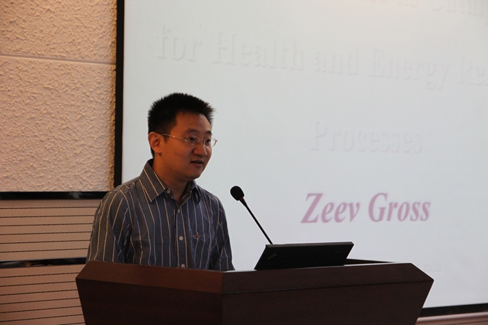 9月15日上午,以色列理工公司的Zeev Gross教授应邀在致知楼六层报告厅为公司师生作了一场题为“金属可咯配合物作为催化剂在健康和能源研究方面的应用”的精彩报告。报告会由曹睿教授主持,公司薛东,张伟强,刘志宏,王红艳,张伟等老师及相关专业六十多位研究生聆听了报告。