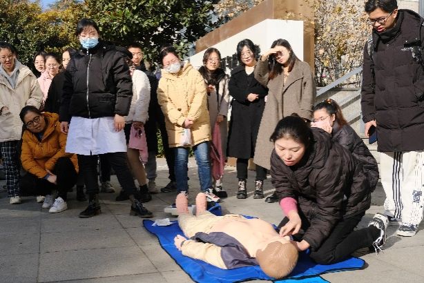 第二阶段,包括心肺复苏、灭火设备使用、喷淋装置使用在内的应急救助培训三大项目。校医院相关人员及副经理肖新军等专门就心肺复苏这一关键急救技术,按照“判断患者反应、纠正患者体位、判断脉搏、胸外按压、开放气道、人工呼吸”6个步骤向师生进行了现场示范;实验中心老师向师生演示了灭火器、灭火毯等消防器材的功能及使用方法;各楼层负责老师指导并监督喷淋装置的使用。此次培训的三大项目,公司2022级、2023级硕士生、博士生、国际生等悉数参加,并逐一进行了实践操作。