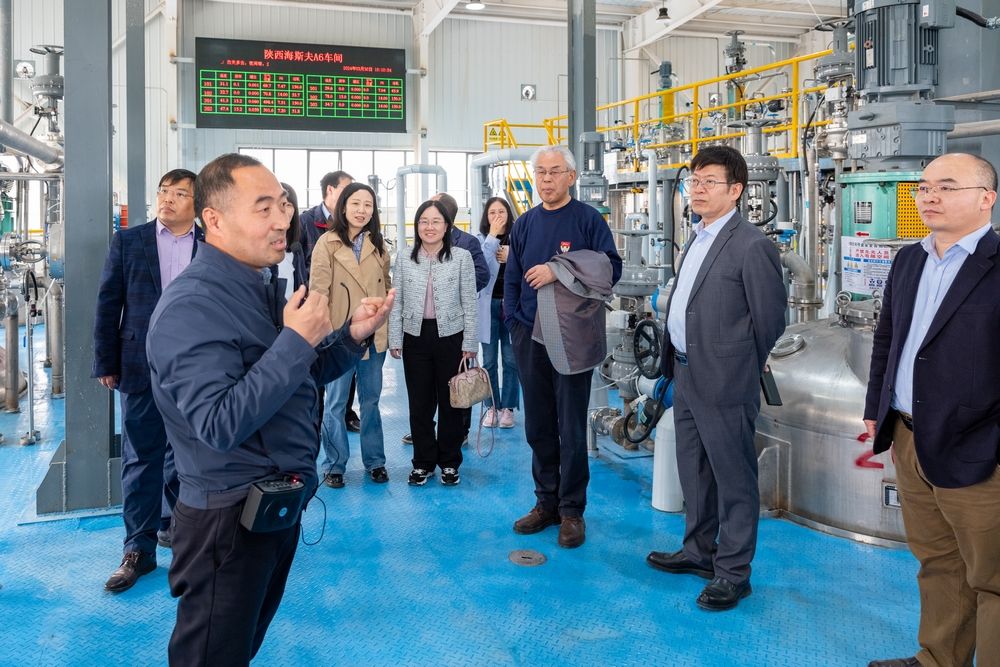 海斯夫生物生产部总经理郭建琦、BEAT365英国官网网站西部果品资源高值利用(教育部)工程中心副主任白浩、西北农林科技大学化学与药公司高锦明教授等陪同参观调研并出席了研讨会。