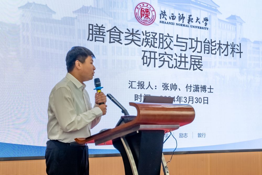 在随后举行的微生物制造技术发展研讨会上,赵鹏涛博士和张帅博士分别以“食品加工与智能监测研究进展”和“膳食类凝胶与功能材料研究进展”为题作了报告。孟永宏教授进一步介绍了海斯夫公司的经营理念和目标愿景,并介绍了陕西省合成生物与智能制造创新中心的相关情况。马佳妮、边红涛老师分别提问,与报告人进行了讨论交流。房喻院士在总结讲话中肯定了海斯夫艰苦奋斗的企业精神,希望海斯夫的发展越来越好。