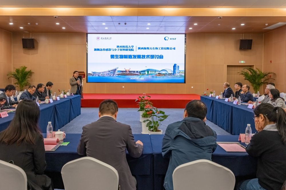 2024年3月30日,新概念传感器与分子材料研究院全体教师、工程技术人员和行政人员前往位于杨凌示范区的陕西海斯夫生物工程有限公司参观调研,并参加了由研究院与海斯夫共同主办的微生物制造技术发展研讨会。