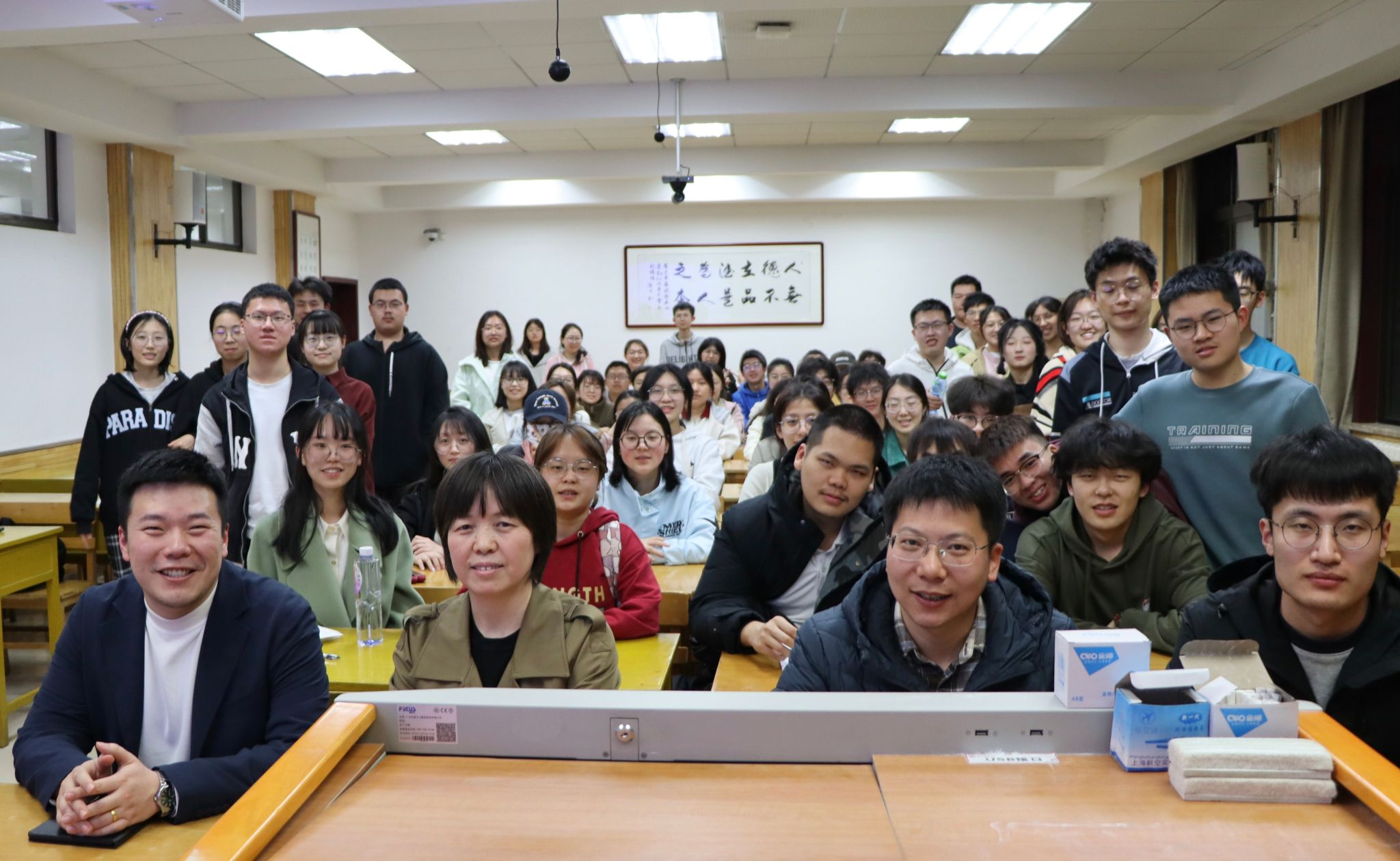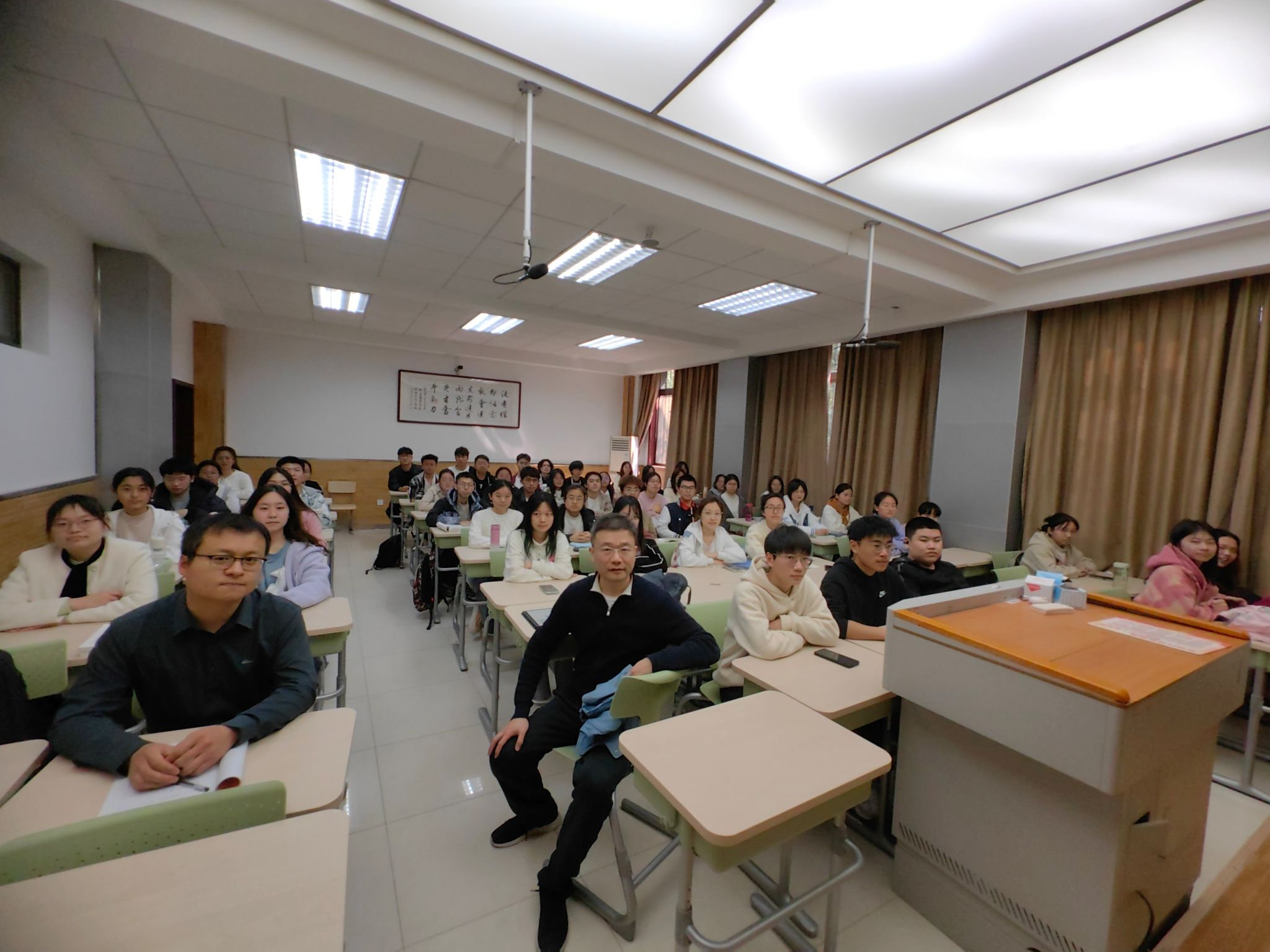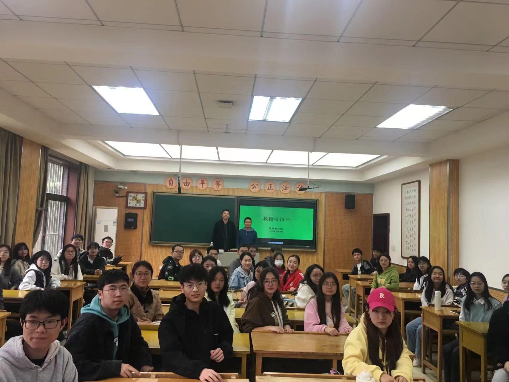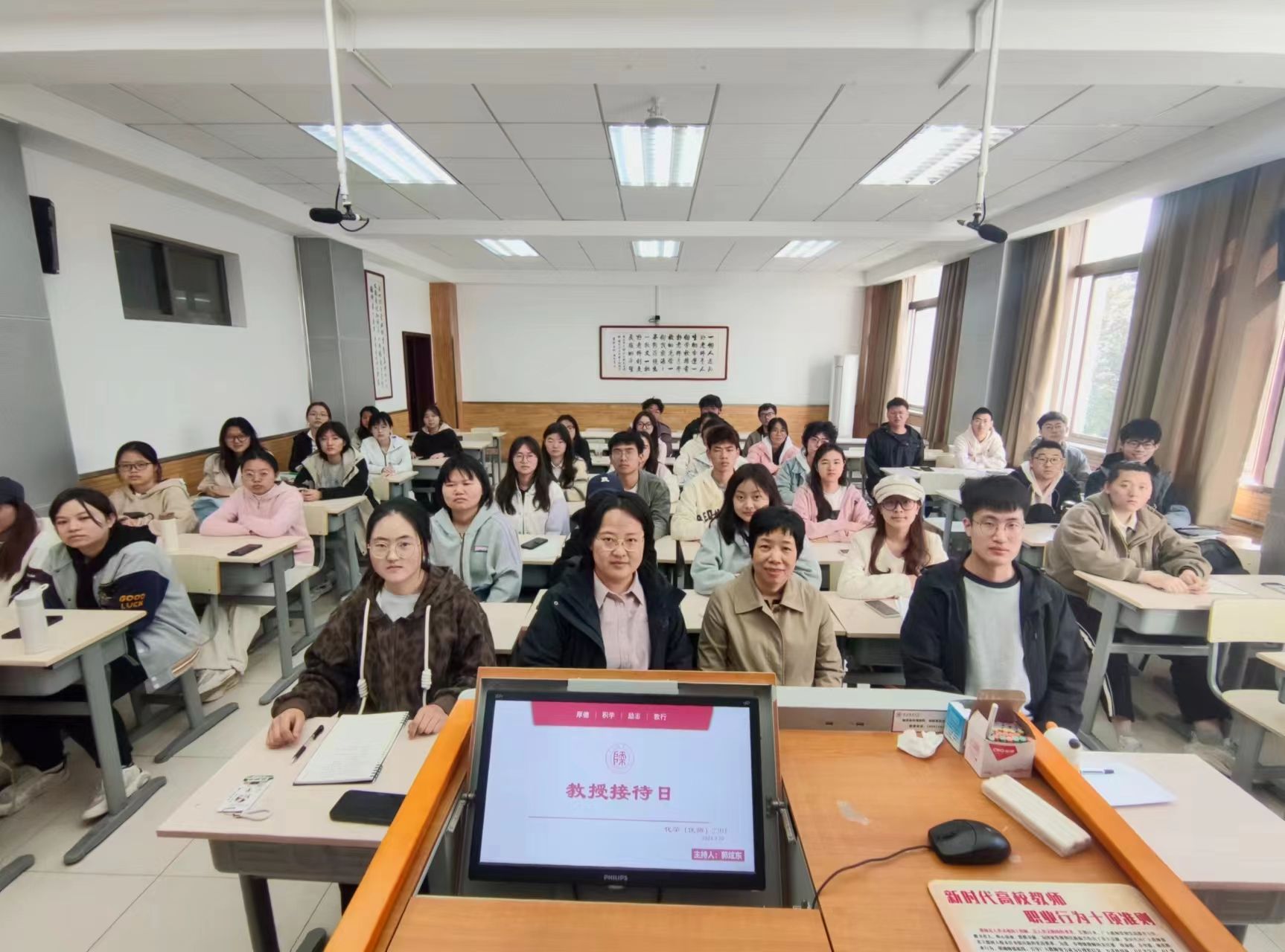 3月25日,化学2302班在雁塔校区教学八楼8403教室举办“教授接待日”活动,杜建修教授应邀参加。化学2302班班主任郭书文与全体员工参加活动。杜建修教授以上学期考试成绩为切入点,结合分析化学课程为同学们进行答疑解惑,叮嘱同学们养成良好学习习惯、提升自身逻辑思维,力争上游,提高核心竞争力。郭老师在总结讲话中勉励同学们关注自身学习成绩,养成良好学习生活习惯,切实提升自身综合素养。