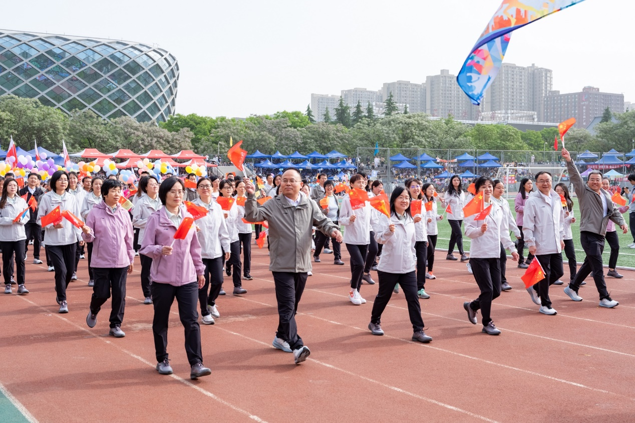 4月24日,公司2024年春季田径运动会长安校区体育场隆重开幕。公司教工精神抖擞,意气风发,为运动会做了充足的训练准备。早上八点,80余位教职工在公司门口集体合影之后意气风发地参加了运动会的入场式。大家迈着矫健的步伐,挥着国旗和院旗,喊着“化学化工,搏击长空,乘风破浪,勇攀高峰”的嘹亮口号走过主席台,充分展现了公司教职工团结奋进、积极向上的精神风貌。