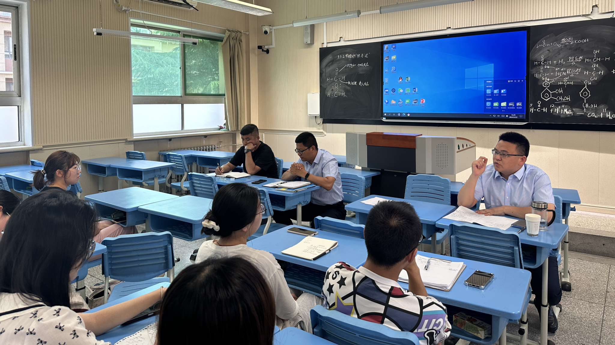 之后,同学们与二位老师以及化学学科组长罗春老师进行了教学研讨。