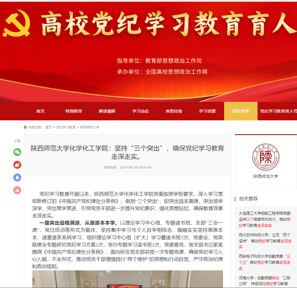 6月28日,《全国高校思想政治工作网》刊发公司党纪学习教育做法:《best365英国在线体育官网:坚持“三个突出”,确保党纪学习教育走深走实。》
