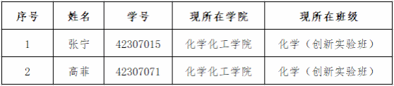 根据教务处《关于做好2023级“人文科学试验班”“理科试验班”中期考核及二次选拔工作的通知》和《beats365唯一官方网站2023级化学笃学班中期考核和二次选拔实施办法》,公司对2023级化学笃学班二次选拔报名的同学进行了考核,现将结果予以公示,公示时间:2024年9月24日-9月26日。公司2名员工通过考核,结果如下(按照学号顺序排序):