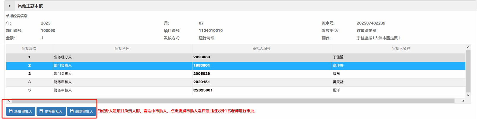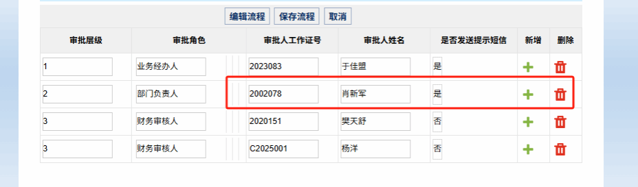 ②每一个审批级次需要保留一个审批人。当一个项目存在多个负责人时,可以删去不需要推送的审批人。