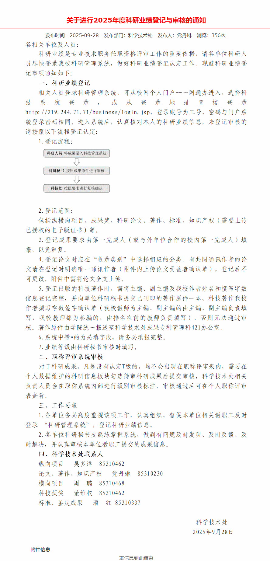 请各位老师认真查阅通知,尽快登录公司科研管理系统,做好科研业绩登记认定工作。
