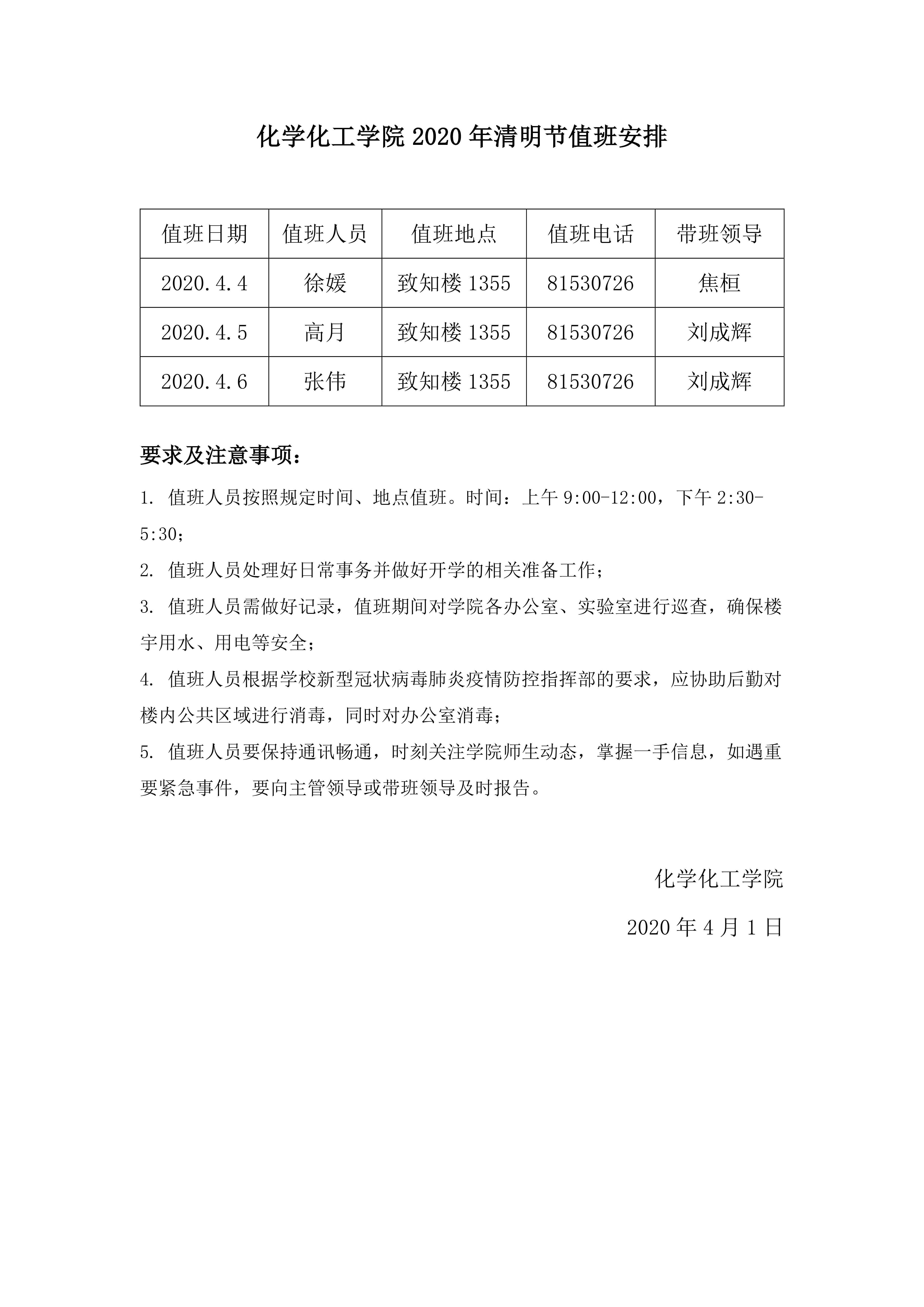 beats365唯一官方网站2020年清明节值班安排