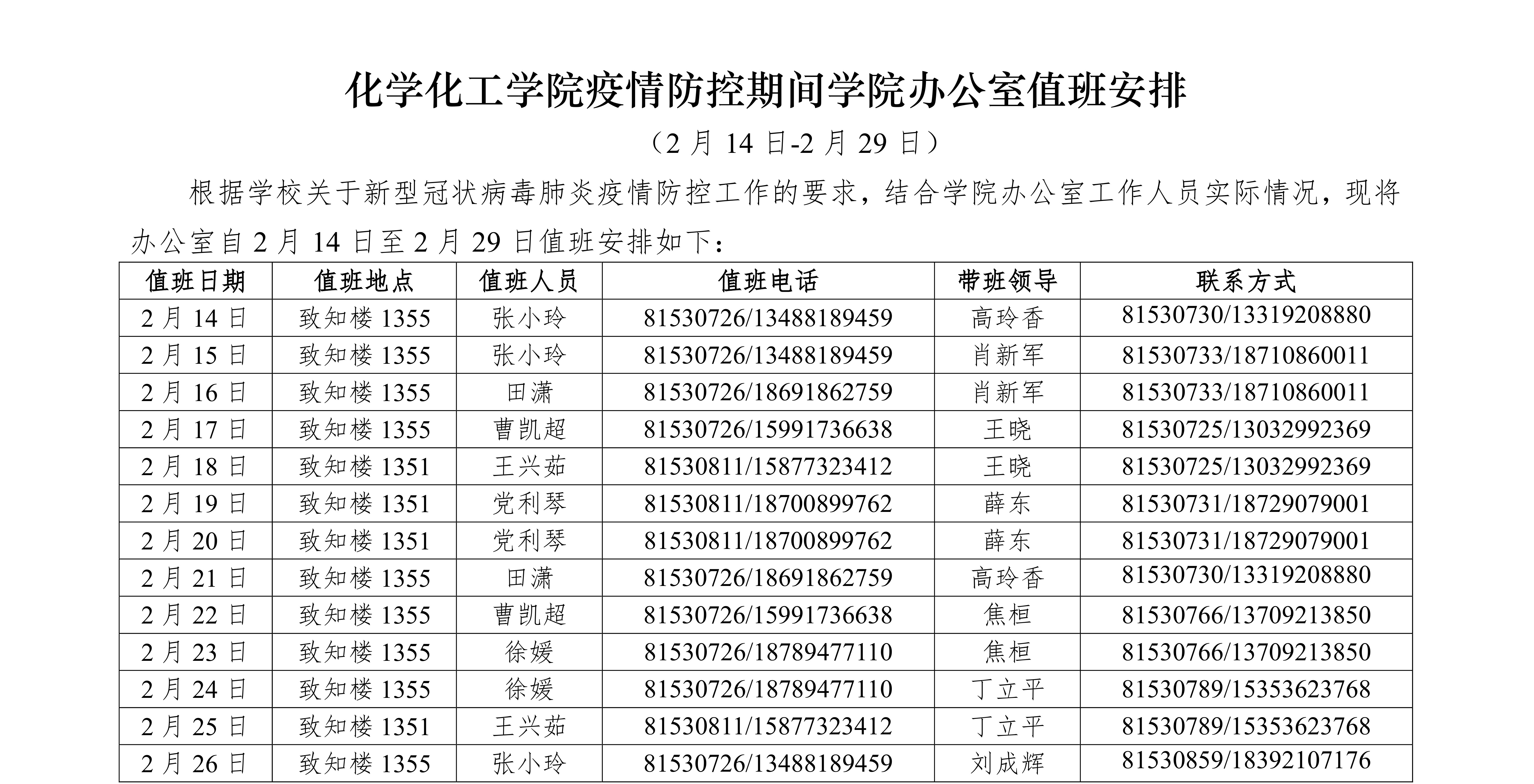 beats365唯一官方网站疫情防控期间公司办公室值班安排 (2月14日-2月29日)