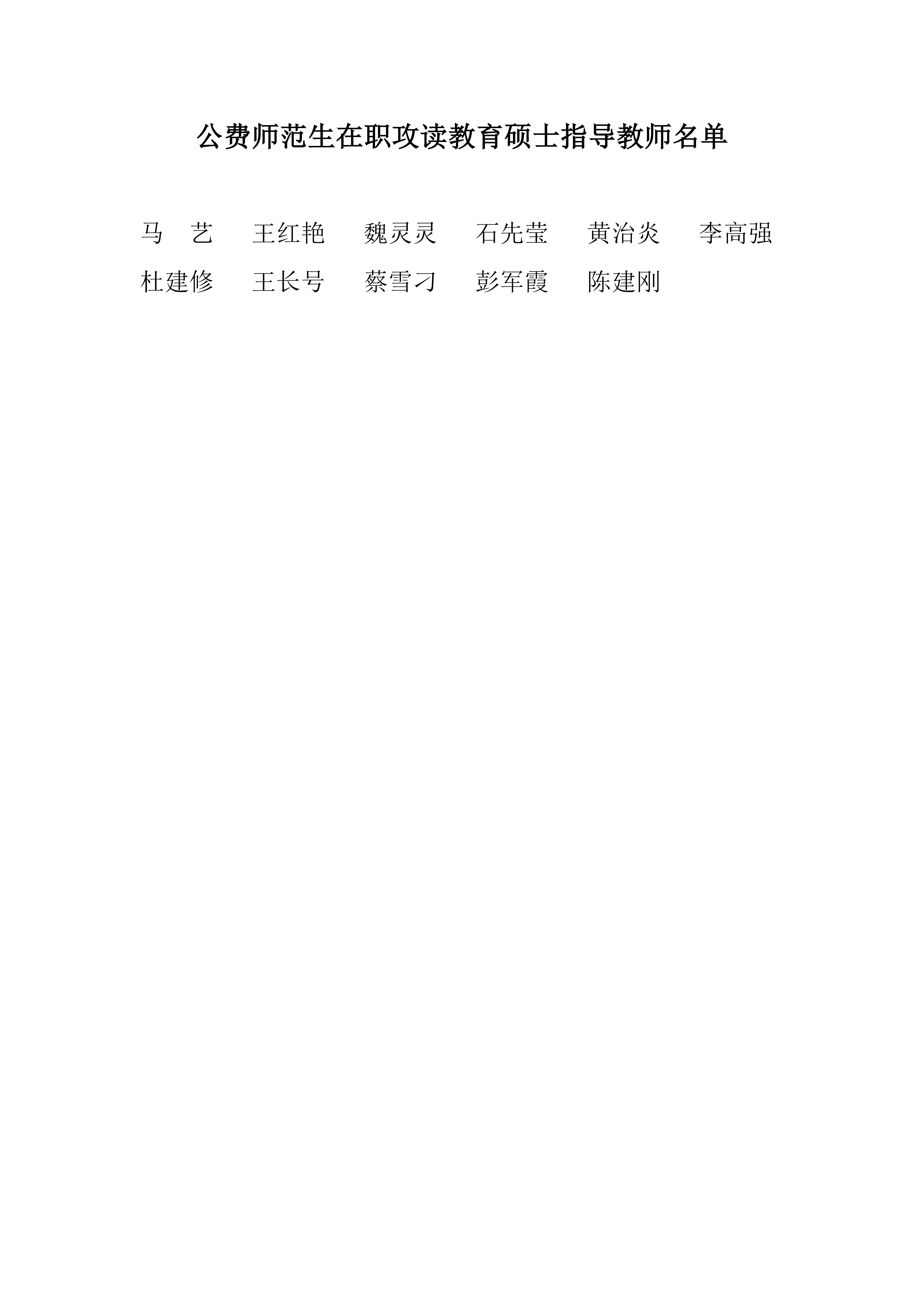 公司通过对公费师范生在职攻读教育硕士指导教师进行名师聘请,成员教师自愿申请、公司审核。确定公费师范生指导教师名单,现予以公示。