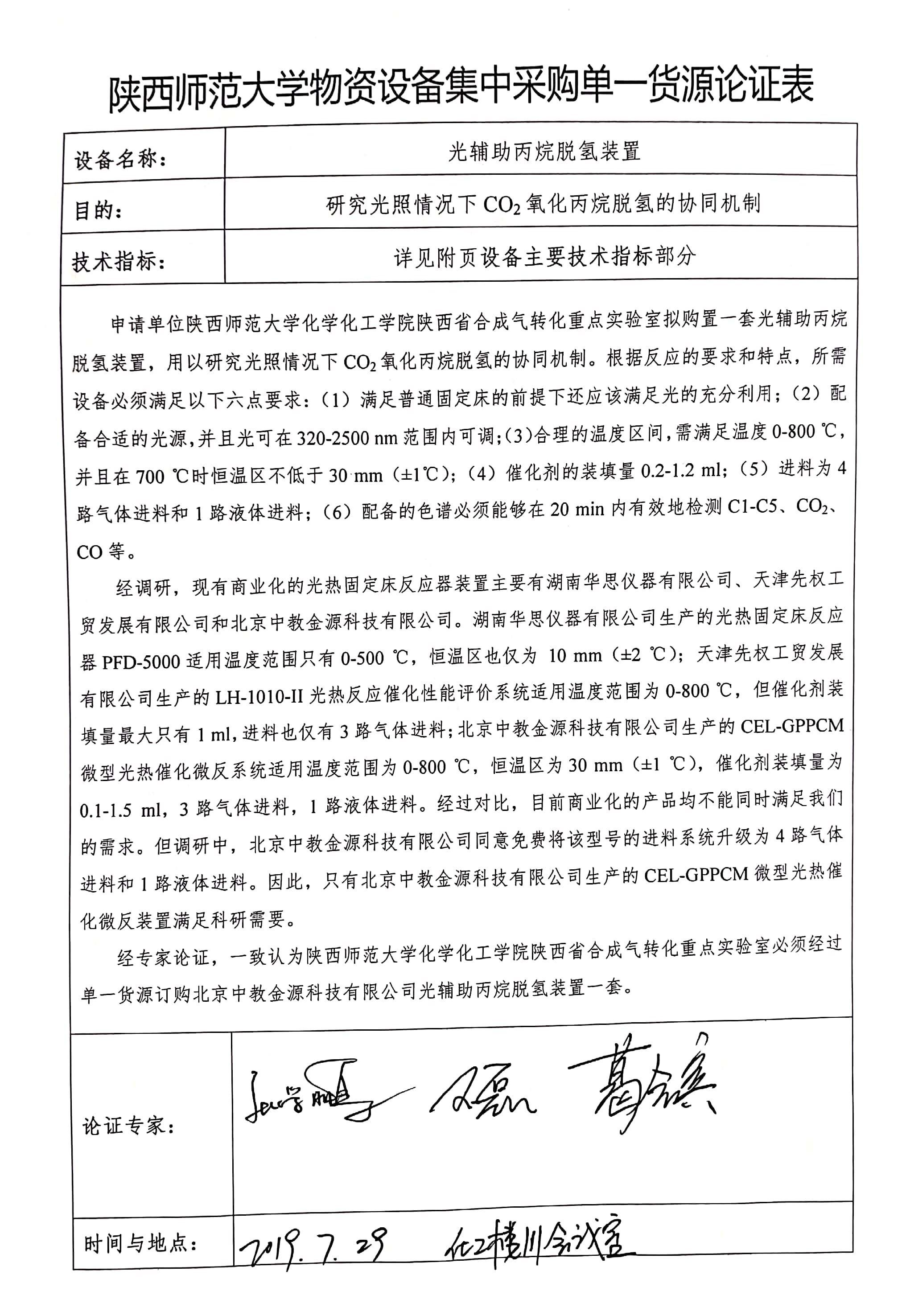 按照国家法律法规和公司相关规定,拟采用单一货源形式采购北京中教金源科技有限公司光辅助丙烷脱氢装置一套。
