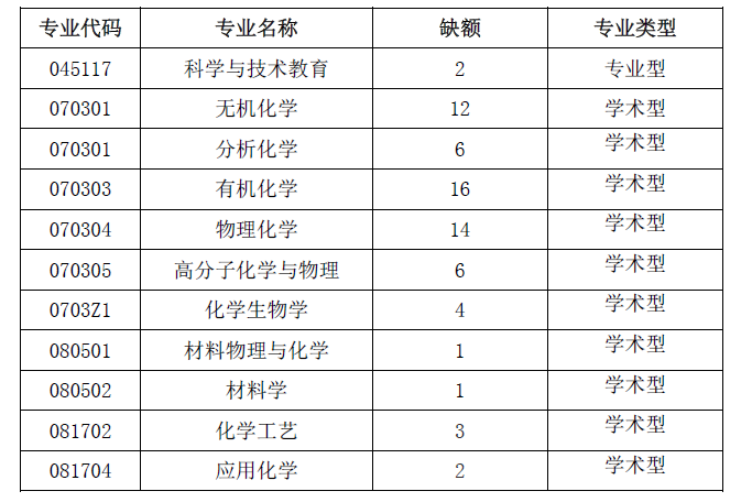2、科学与技术教育(045117)仅接收一志愿报考专业代码为045117、040102(考试科目包含化学类)、045106的调剂生,其它专业调剂生原报考专业代码必须与拟调剂专业代码前四位一致。