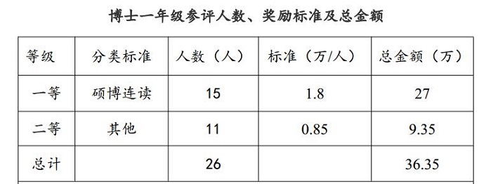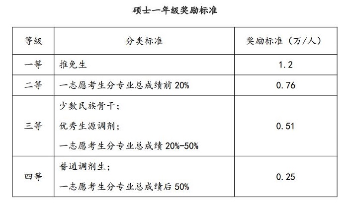 1. 一年级研究生奖励标准