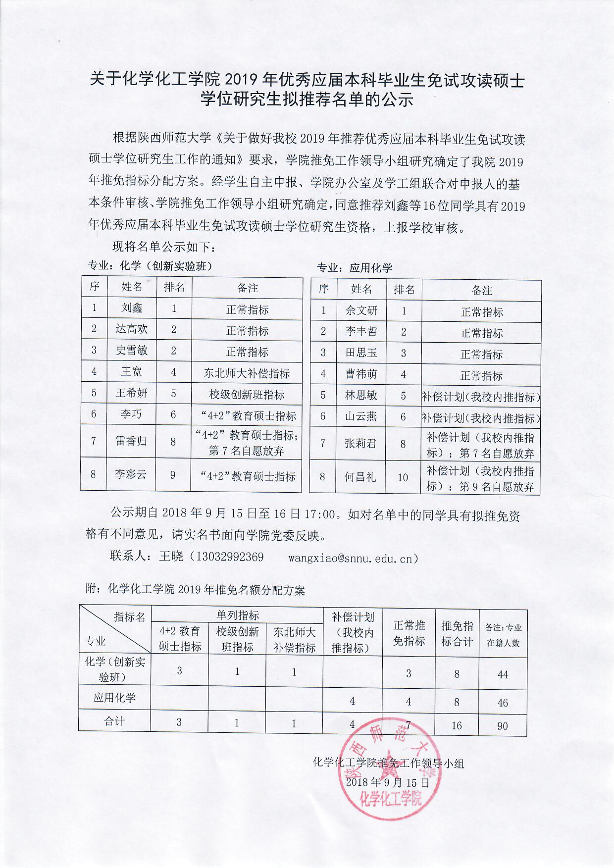关于beats365唯一官方网站2019届优秀应届本科毕业生免试攻读硕士学位研究生拟推荐名单的公示