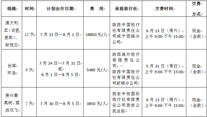 为了贯彻《教师法》精神,落实教职工休养休息工作,丰富教职工暑期生活,根据工会工作安排,今年暑假期间继续组织教职工进行旅游休息休养活动。在听取教职工建议及市场调研的基础上,5月21日询价会确定了相关线路、承接旅行社及价格。现将有关事宜通知如下: