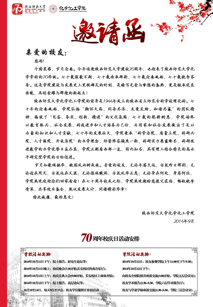 《七十年校庆员工邀请函》