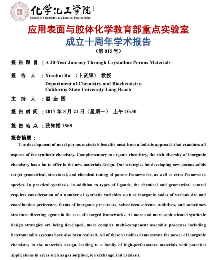应用表面与胶体化学教育部重点实验室成立十周年学术报告15