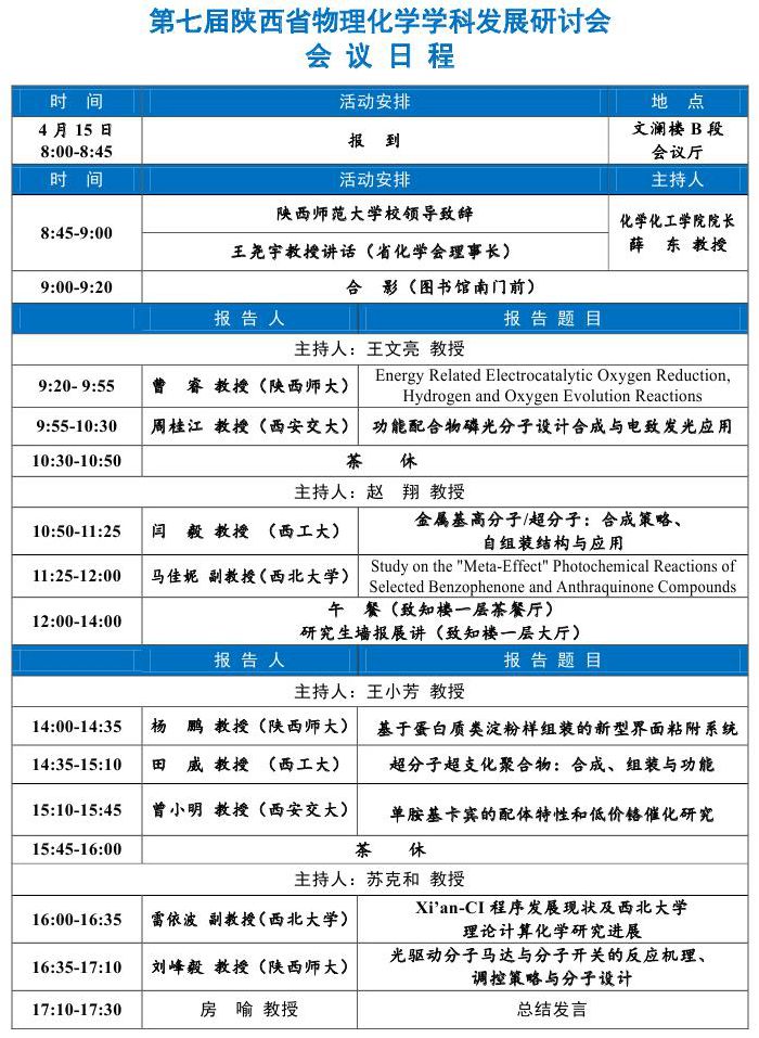 2017年陕西省物理化学学科发展研讨会通知