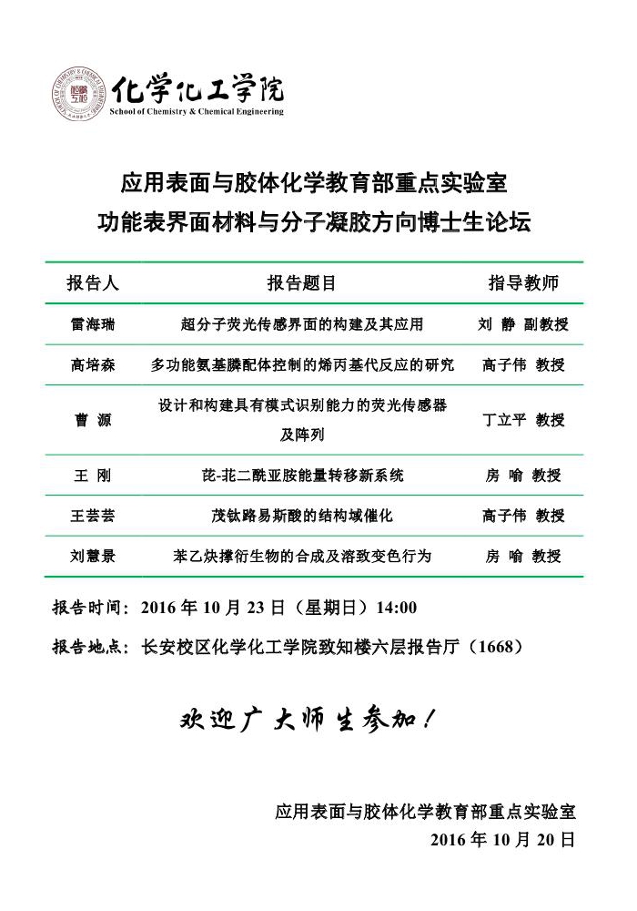 应用表面与胶体化学教育部重点实验室博士生论坛