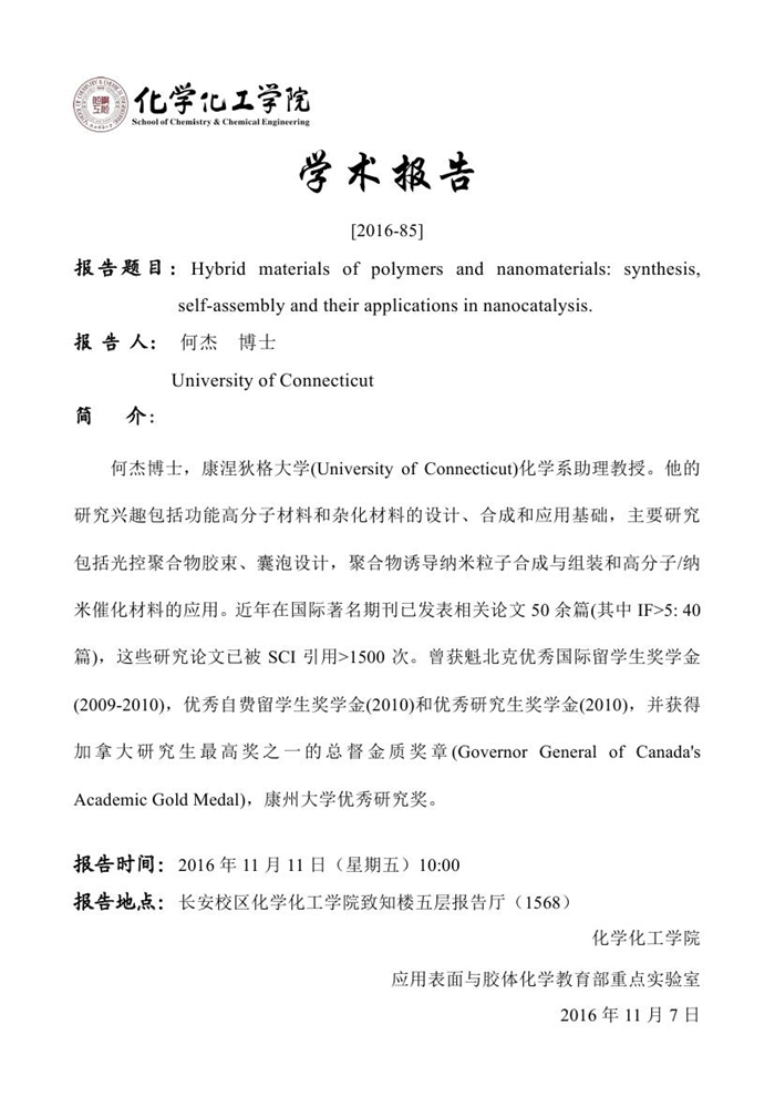 学术报告预告[2016-85]