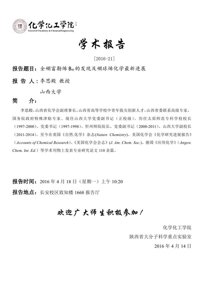 学术报告预告[2016-21]