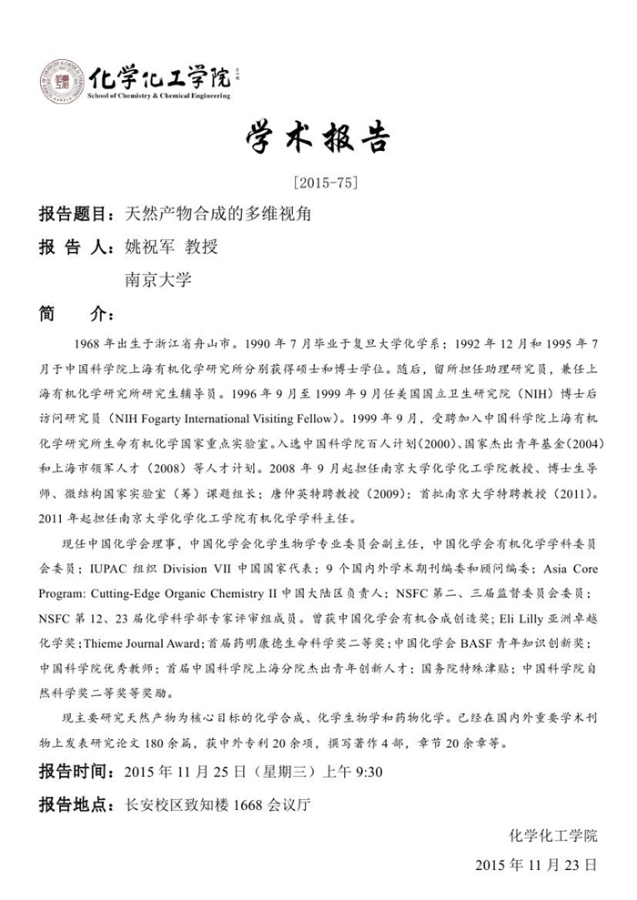 学术报告预告[2015-75]
