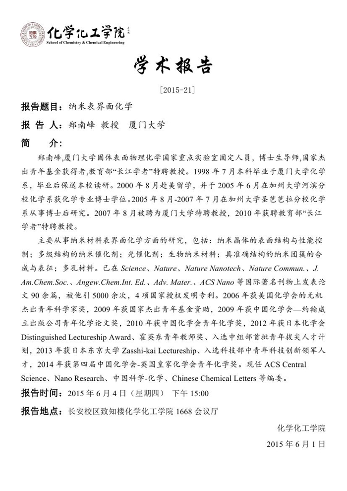 学术报告预告[2015-21]