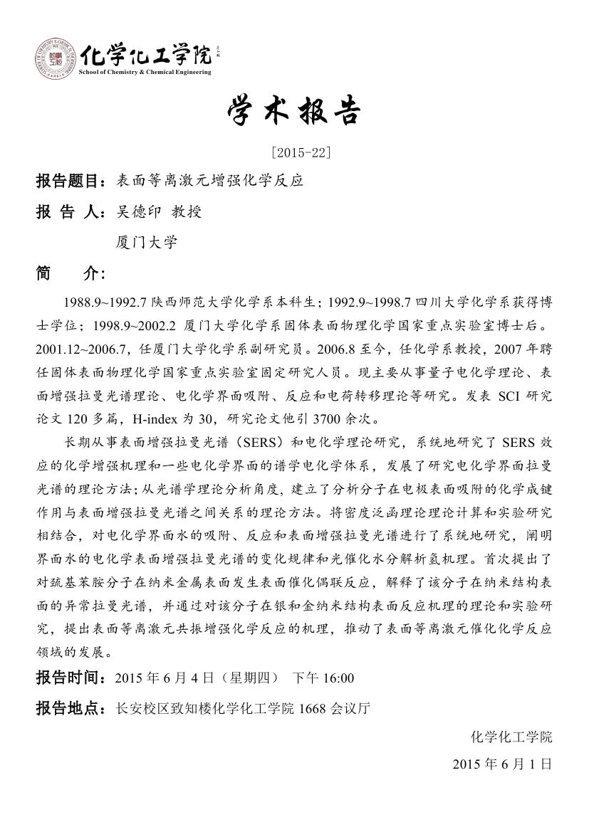 学术报告预告[2015-22]