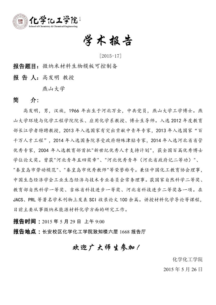 学术报告预告[2015-17]