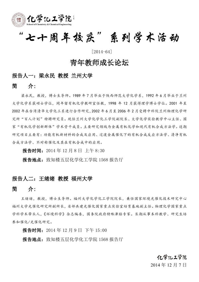 “七十周年校庆系列活动” [2014-64]