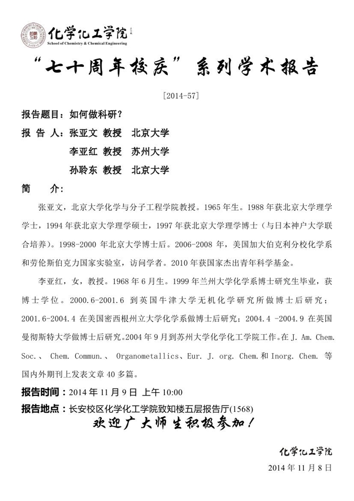 “七十周年校庆系列讲座” [2014-57]
