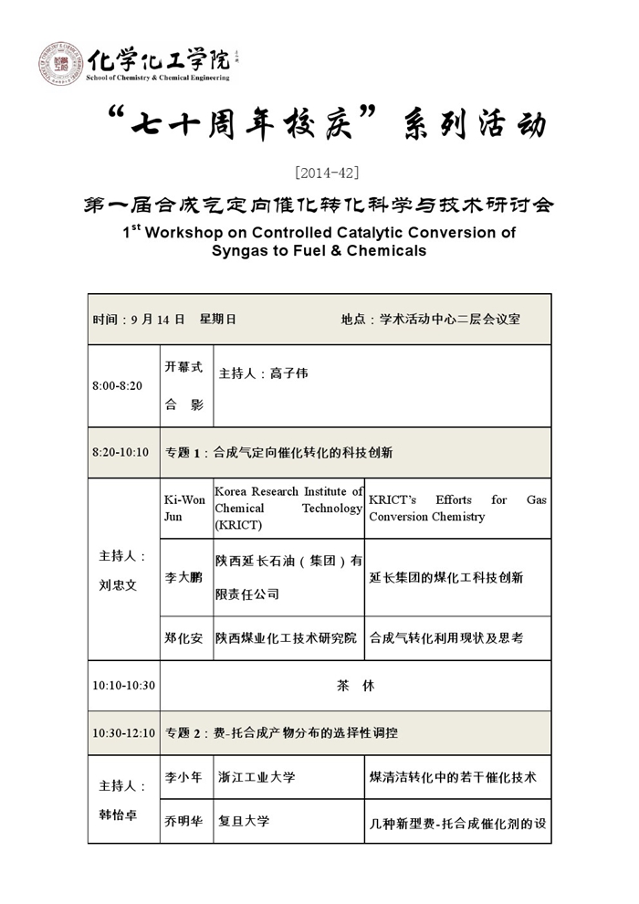 “七十周年系列活动” 合成气定向催化转化科技研讨会