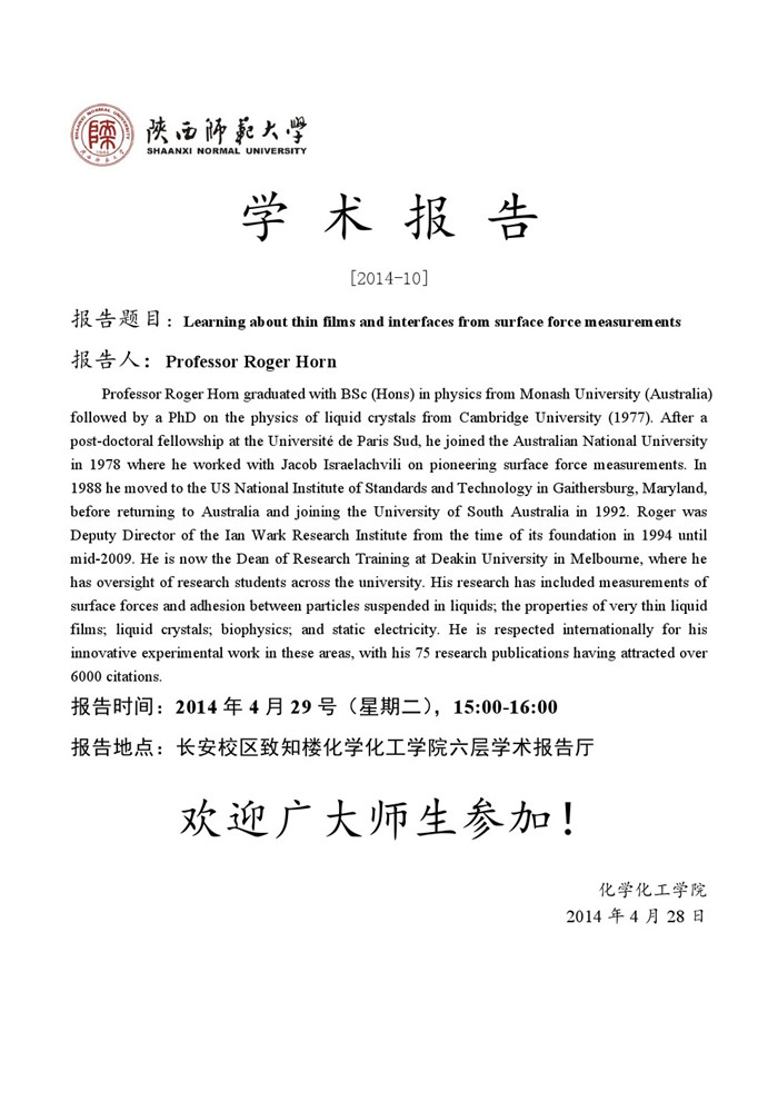 学术报告预告[2014-10]