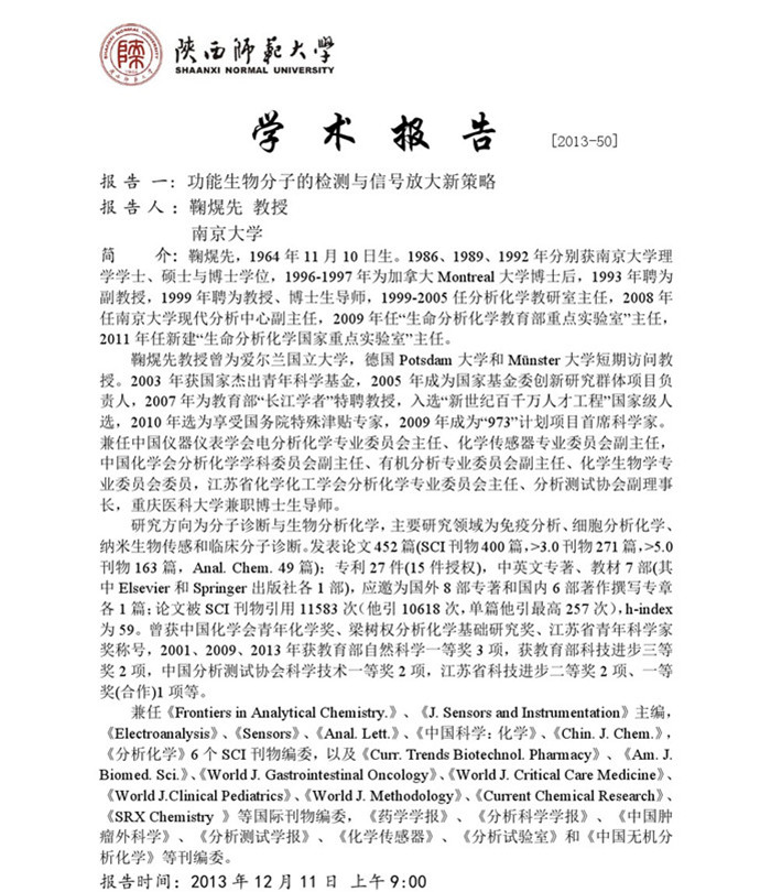 学术报告预告[2013-50]